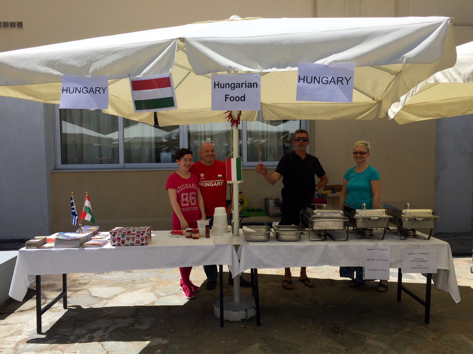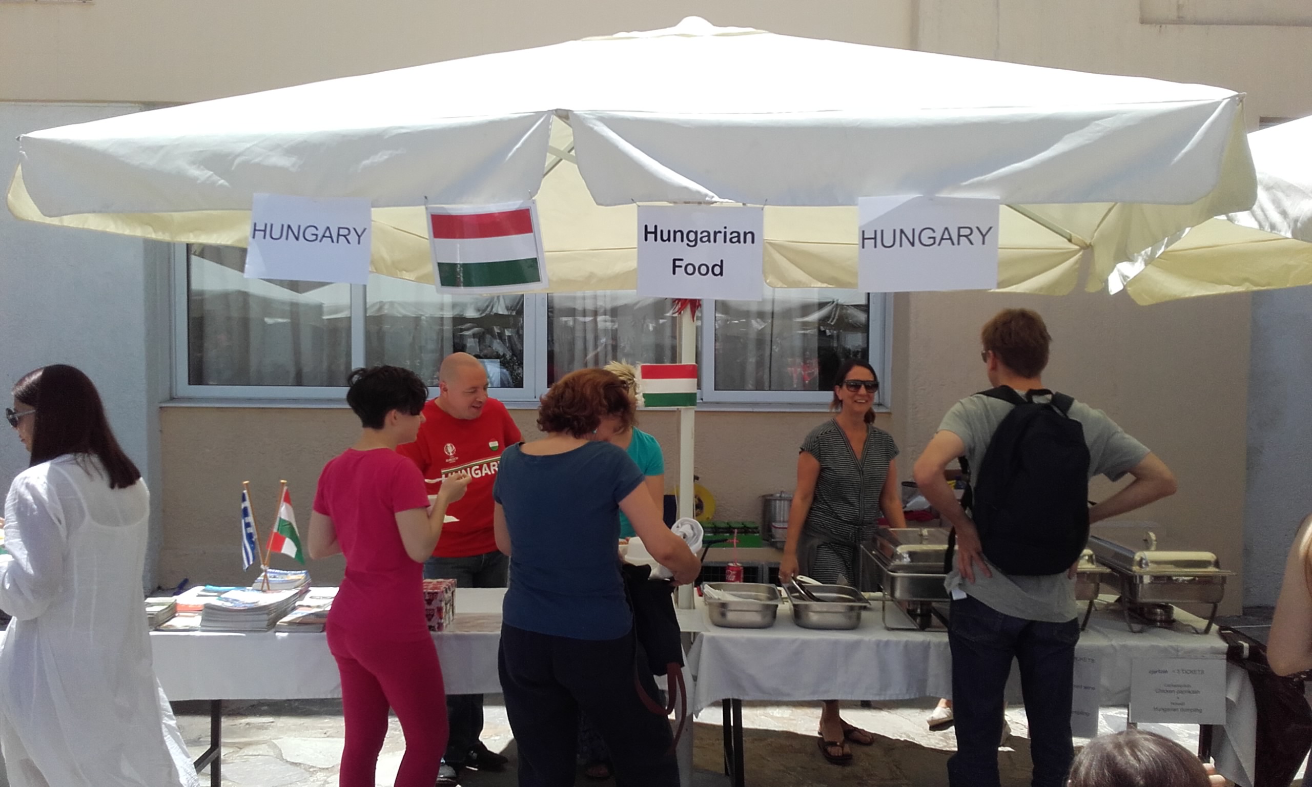 Május 20-án került sor az athéni American Community School "Spring Fest" elnevezésű szokásos tavaszi rendezvényére, amelyen az iskolában tanuló diákok és családtagjaik saját készítésű nemzeti ételeiket kínálták az éhes látogatóknak. A munkatársunk gyermekeit is padsoraiban tudó iskola udvarán idén körülbelül tíz ország szülöttei állítottak standot, köztük kollégáink is. A nokedlivel tálalt ízletes csirkepaprikásnak és a vörösboros marhapörköltnek átütő sikere volt, a rendezvény végére több mint száz adag étel fogyott el. Az ételárusításból származó bevételeket a résztvevők az iskola támogatására fordították.